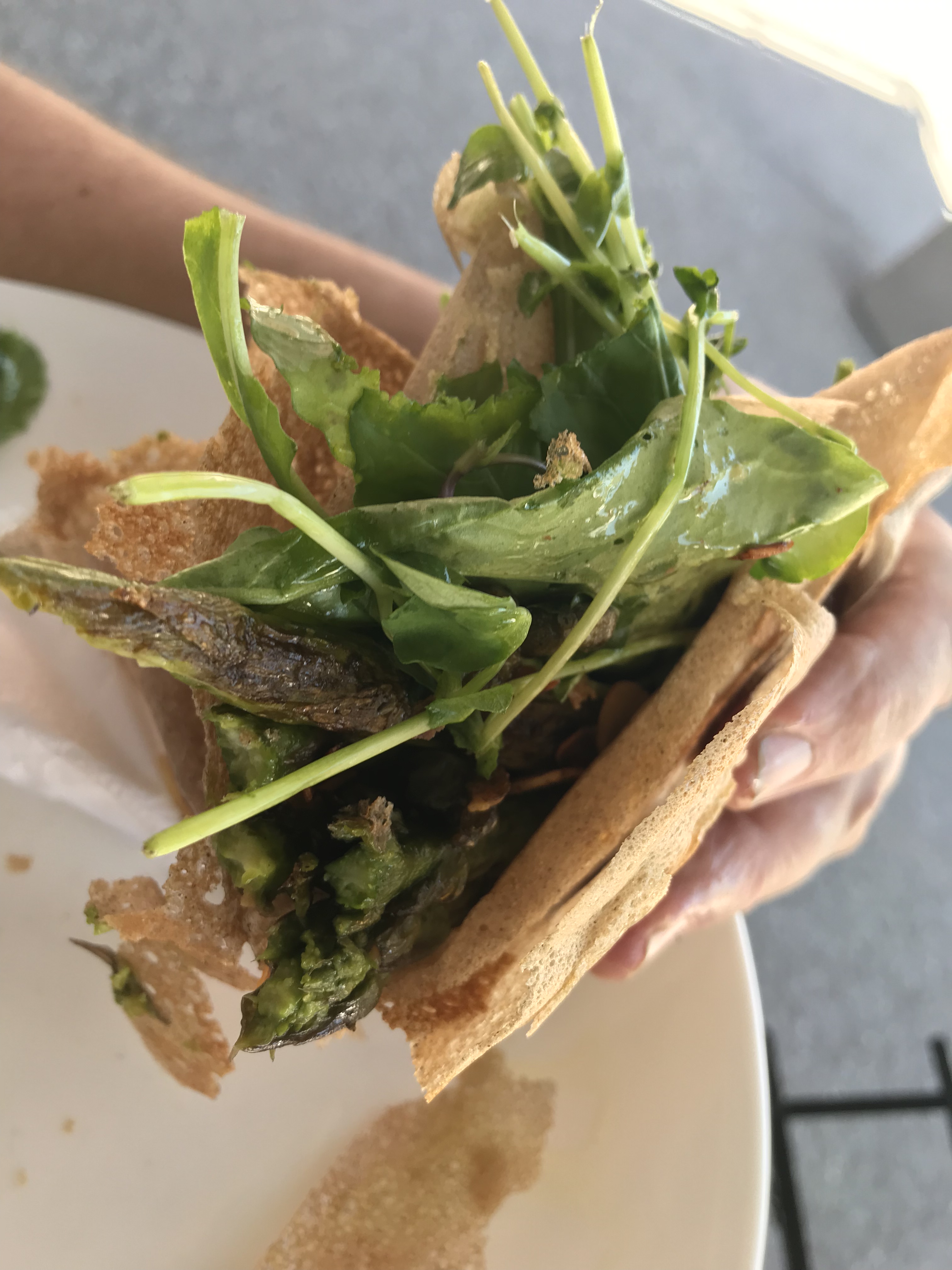 Bring cash, a big bag or 2 and an empty belly — the food court is lined with amazing options including popular bacon on a bun, eggrolls, poutine, Brazilian, Lebanese and Thai options — my favourites are probably the pizza place (be prepared to stand in line and get there early before they run out…) and the aforementioned Crepetown… A gluten free crepery run by an actual neighbour of mine from Kemptville… Michelle makes an amazing fresh buckwheat crepe to order, filled with any of a dozen different options and with delicious seasonal specials– this week was asparagus with pea sprouts, spinach, almonds, garlic and olive oil; it was about as close to perfect as I could have asked for and was dairy free, hot, fresh and seasonally correct to boot!